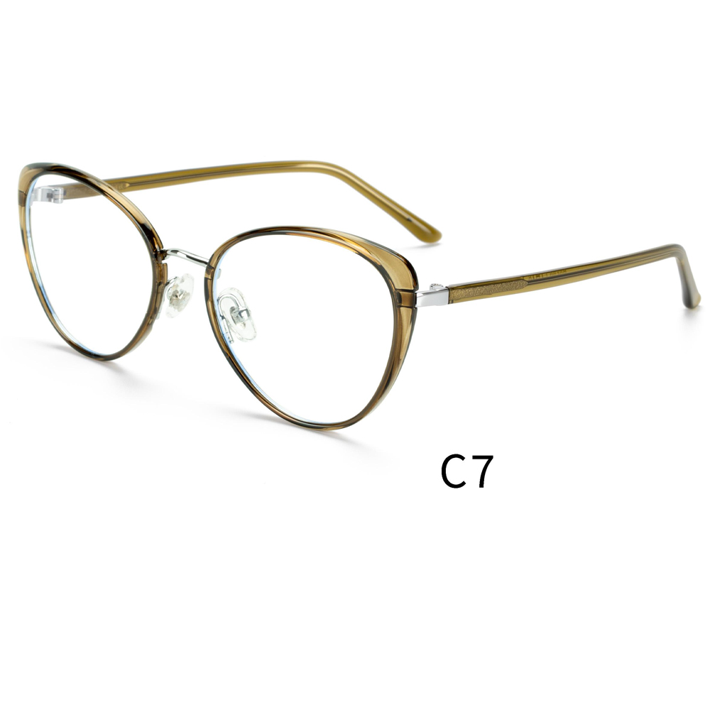 B9538 High Quality Acetate Mix Metal Unisex Eyeglasses Solid Cat Eye Optical Frames Fashionable Wholesale Custom Eyewear