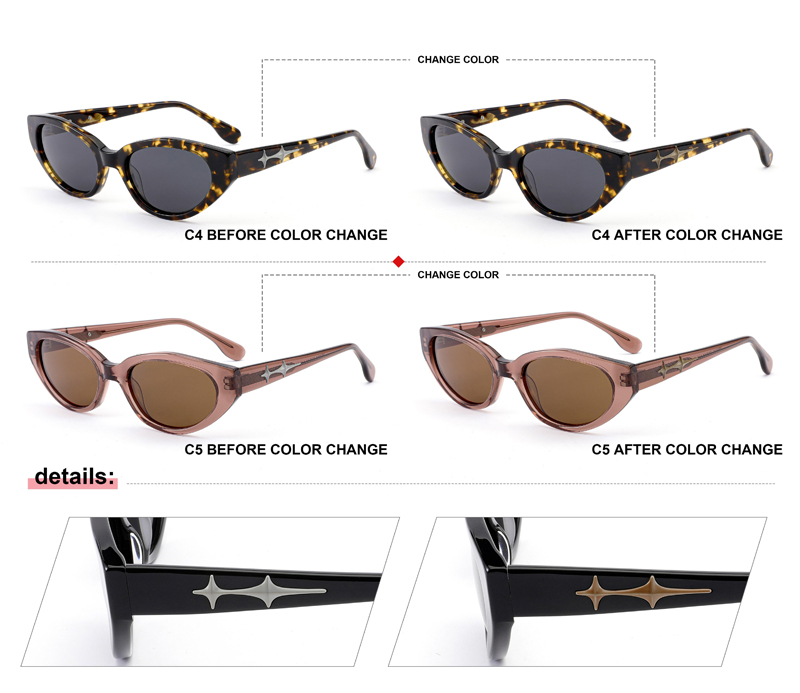 Today I would like to share with you our new design ,which the metal decoration on temple can change the color by ultraviolet light.