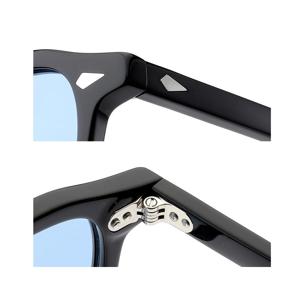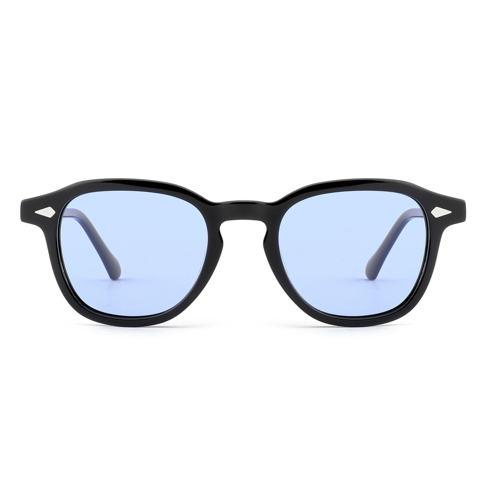 Round black frame with blue polarized lens .and the rivet looks very nice !