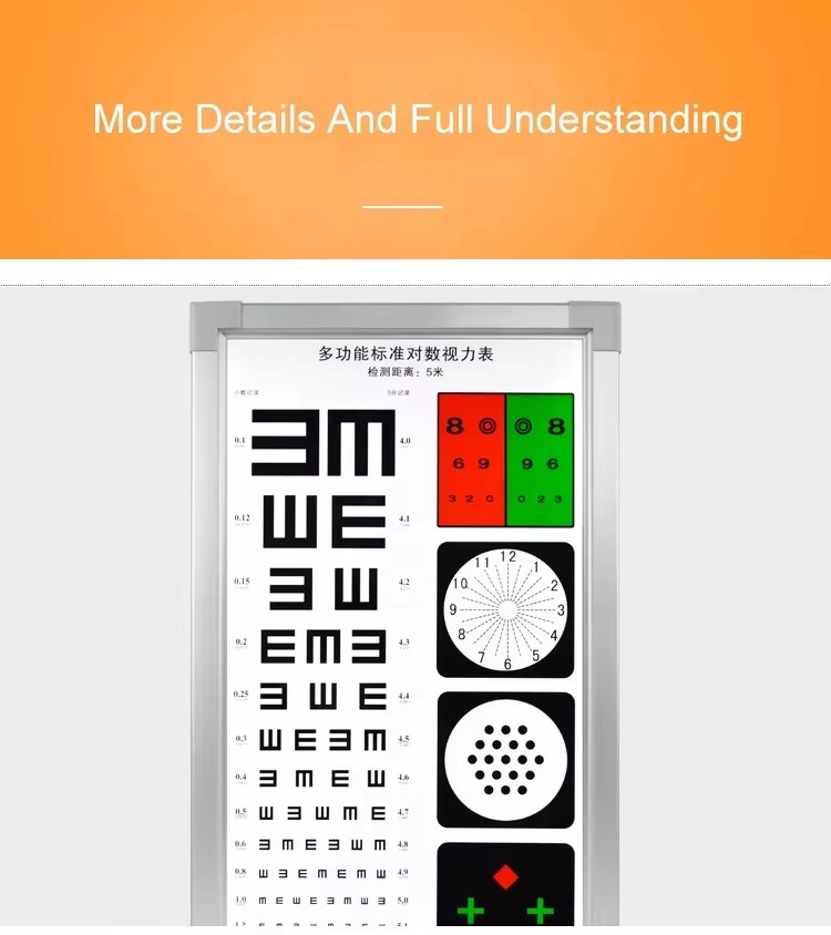 Currently, the most widely used is the logarithmic vision chart, which mainly features that the size of the visual targets is sorted in a geometric (equal ratio) series, and the five-point vision values are sorted in an arithmetic (equal difference) series. Any vision chart that meets these conditions can be called a logarithmic vision chart.