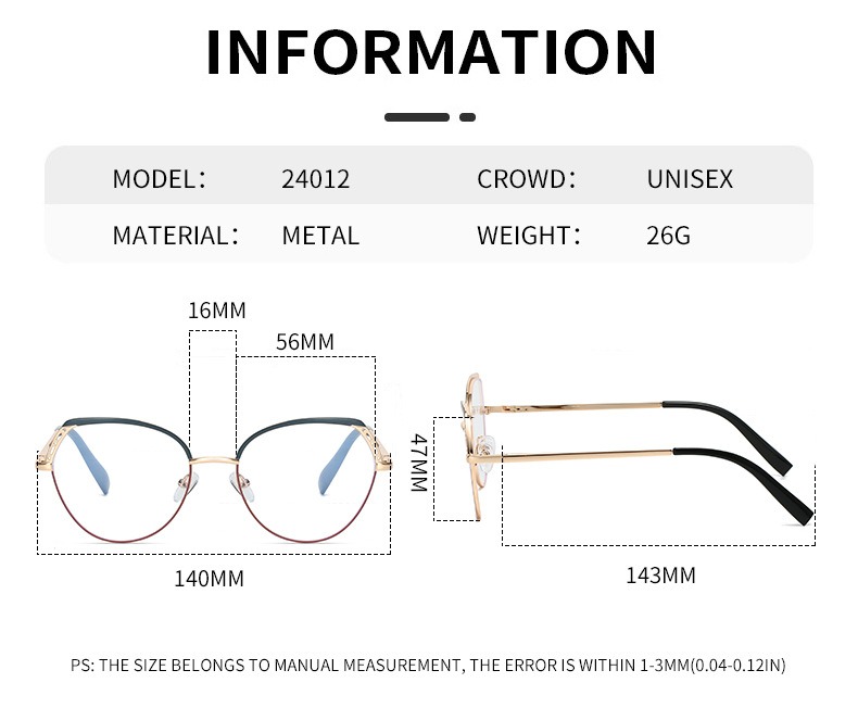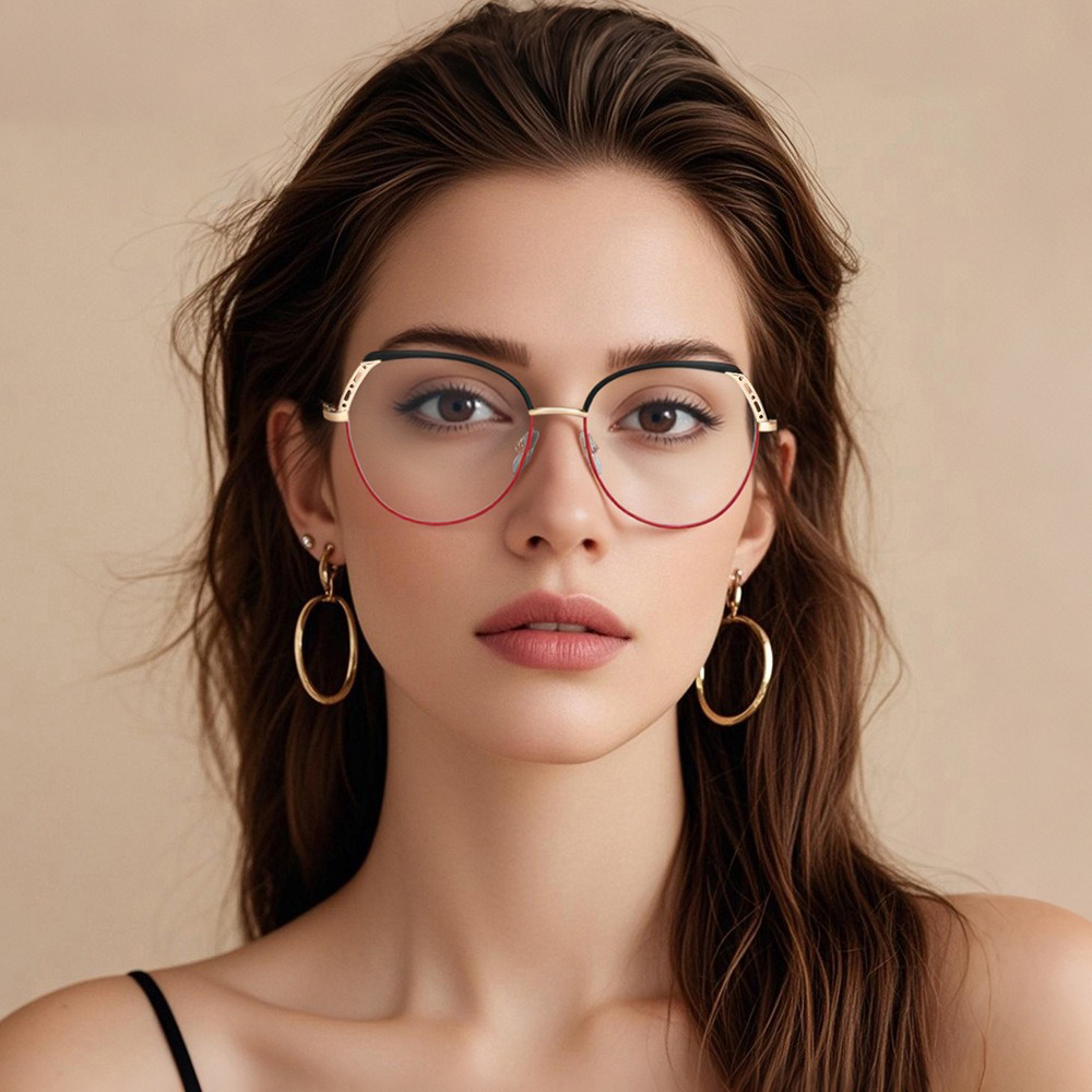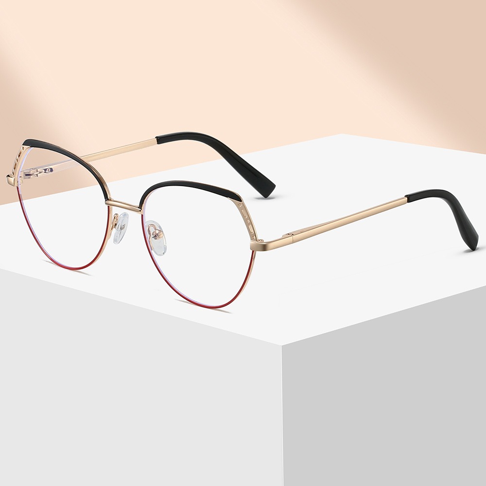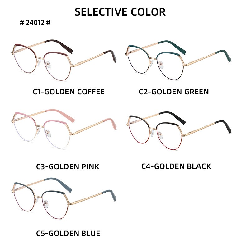 24012 New Arrival Women Fashion Cat Eye Glasses Coffee Pink Metal Blue Light Optical Glasses |