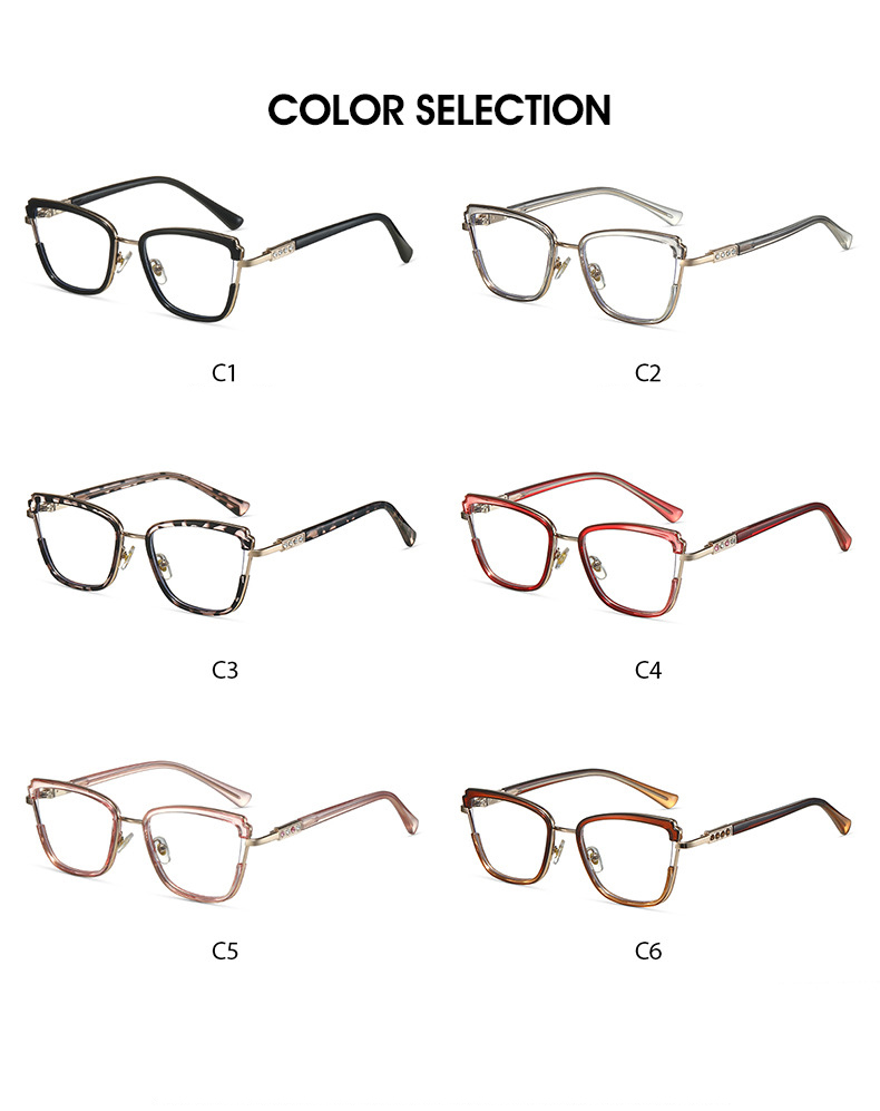 86015 Fashion Transparent Frame Women Eyewear Anti Blue Light Photochromic Lens Metal Diamond Temple Optical Glasses |