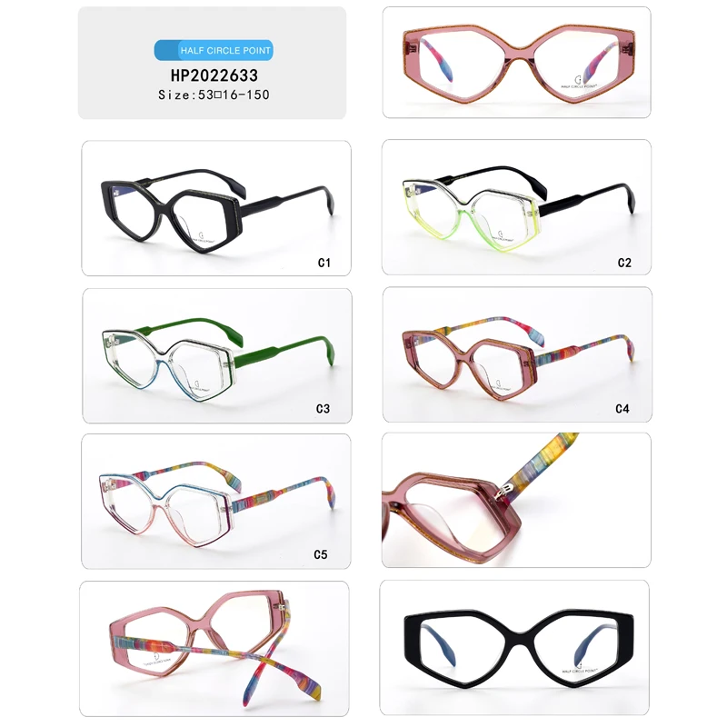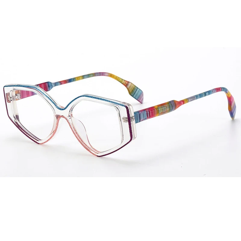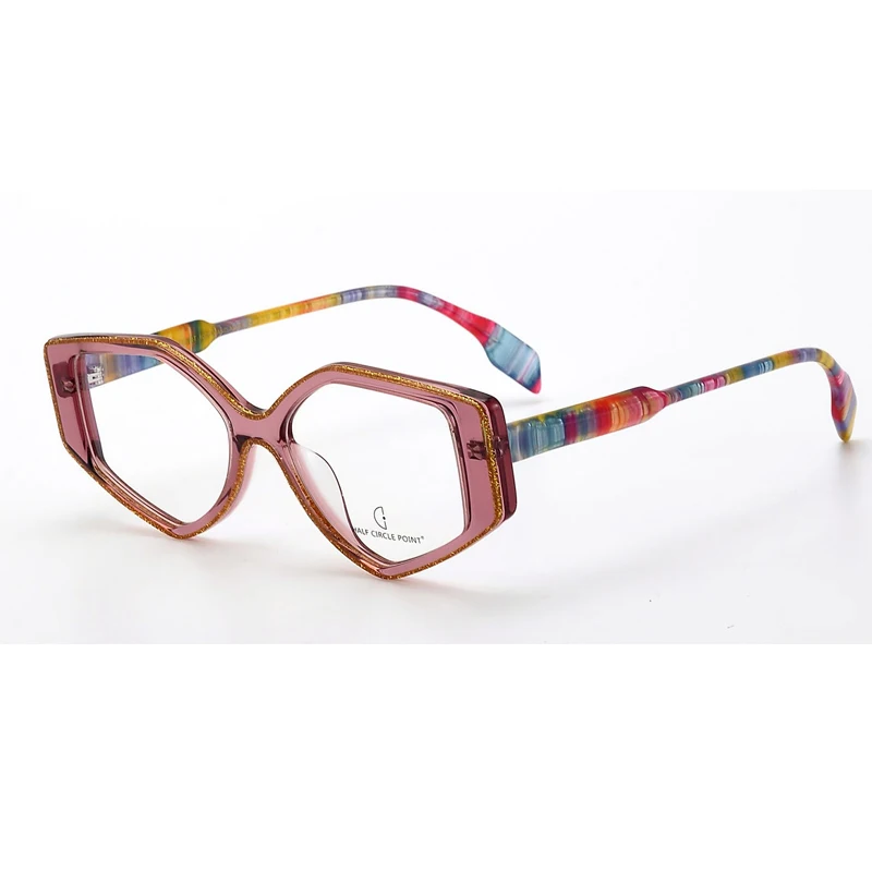 SBYD-HP2022633 Colorful Vintage Geometric Acetate Eyeglass Frames for All Face Flat Lens Spectacles Eyewear