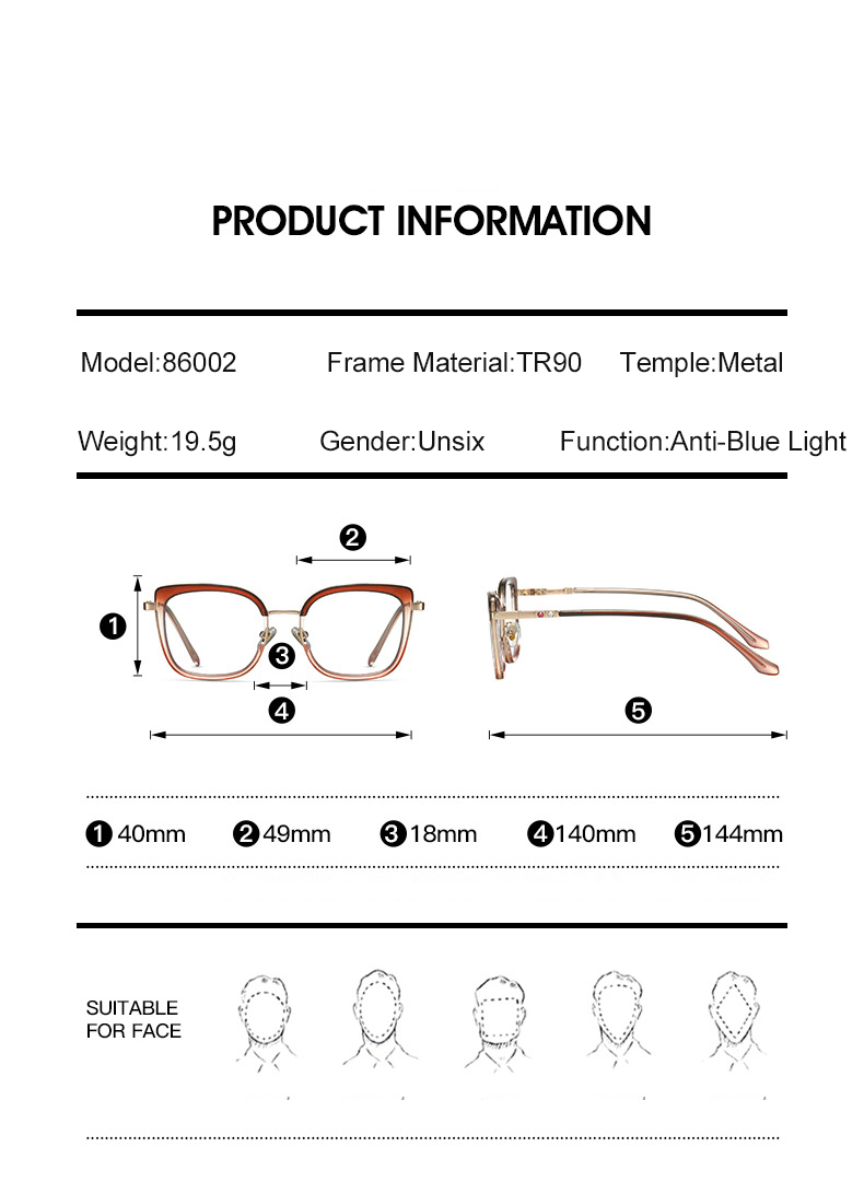 Trendy Women Square Frame Anti-Blue Light Glasses TR90 Spring Hinge Diamond Temple Eyeglasses |