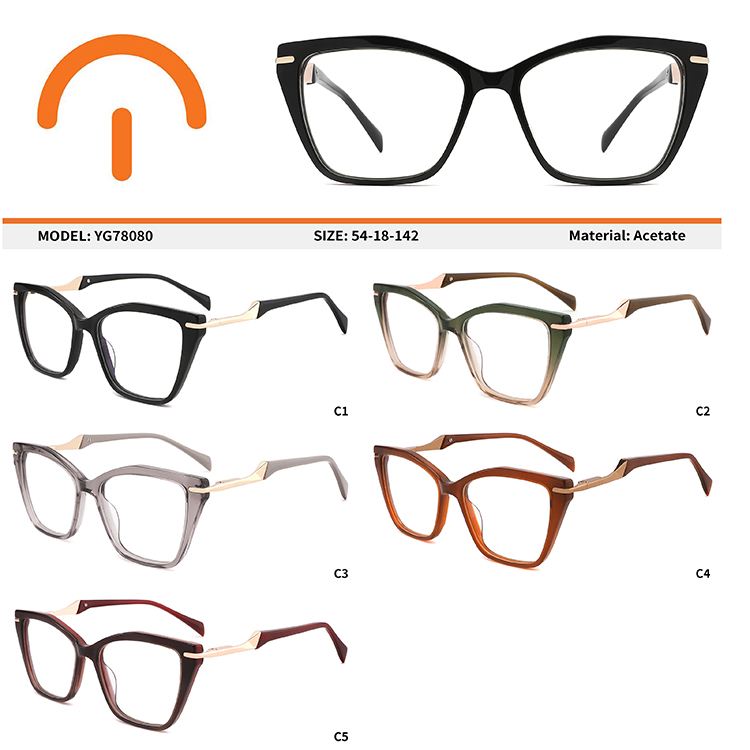 YG78080 High-Quality Acetate Glasses Men Women Fashion Green Brown Cat-Eye Frame Metal Temple Eyeglasses |